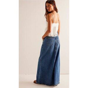 Free People We The Free Come As You Are Dark Indigo Blue Denim Maxi Skirt Size 4