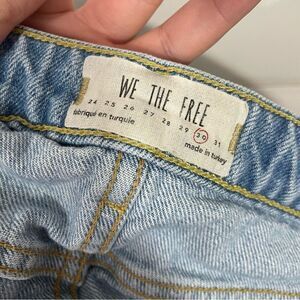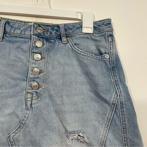 Gently worn women's size 8 Free people we the free distressed jean skirt. Mini length, multi button, Please review all photos for any signs of wear-pictured as is. Disclaimer: Any items with any wear/staining has not been treated, and unsure of ability to remove/treat condition. Comes from a smoke free home, bundle with other items to save & minimize shipping cost.