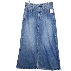 Free People We The Free Denim Maxi Skirt Sz 8 Sapphire Blue Slit Boho Preppy NWT