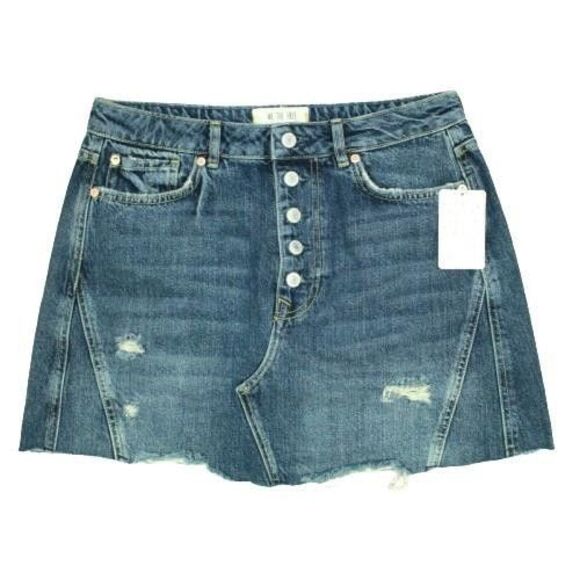 Free People We The Free Denim Mini Skirt Distressed Button Fly Women's Size 31 New with tags