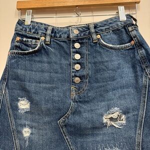 Free People We The Free Distressed Denim Cut Off Jean Mini Skirt Size 27 Blue