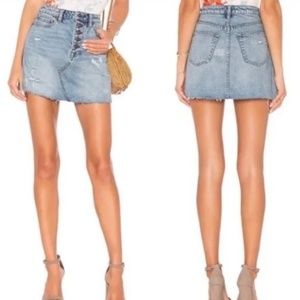 Free People, We The Free - Distressed Jean Skirt, Raw Hem, Denim A-Line, Size 27