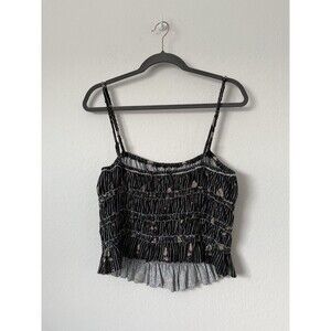 Free People We The Free Dolce Vita Cami Tank Top Smocked Black Floral size XL
