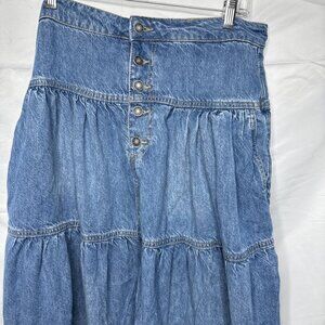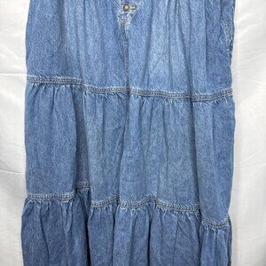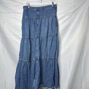 Free People We The Free Dreamweaver Maxi Skirt Sz L Blue DenimTiered Jean