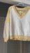 Features: Comfy cotton terry fabrication, V-neckline, drop-shoulder sleeves, contrasting ribbed trim and striped accents