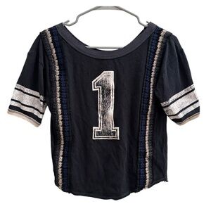 Free People We The Free First Place Cotton Crochet-Trim T-Shirt Graphic Tee