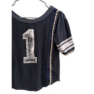 Take first place in this cotton graphic T-shirt from Free People, styled with crochet trimming and unfinished edges.