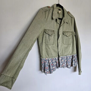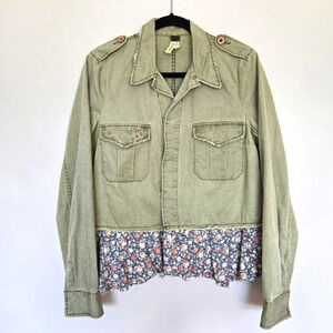 Free People We The Free Floral Hem Army Jacket Womens M Cottagecore Boho Utility