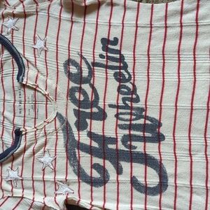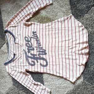 Cream colored with red stripes and blue collar 3/4 Sleeves