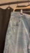 Features: Button closure, rigid denim fabrication, belt loops at waistband, 4-pocket style, subtle distressing, tapered bottom hem, seam detail throughout