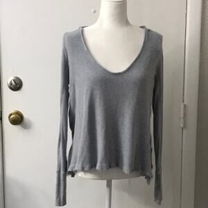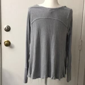 Free People We The Free Gray Waffle Knit Thermal Raw Hem S Oversized Twilight
