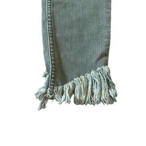 Free People Great Heights Frayed Skinny Jeans Size 27. Great stretch but runs smaller. Color is a greenish-gray with manufactured distressing. Hem is frayed. Cropped skinny style; mid-to-higher rise fit. Measurements in pictures.