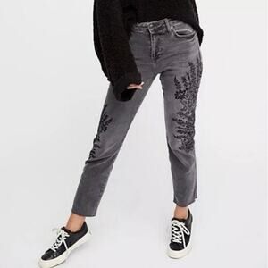 Free People We The Free Grey Floral Embroidered Girlfriend Straight Leg Jeans 27