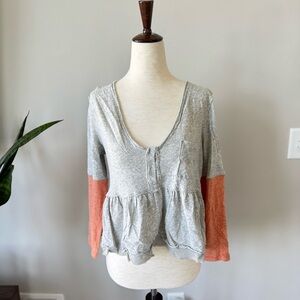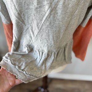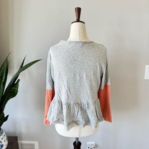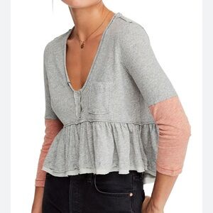 Stylish and comfortable, this gray and pink peplum top is perfect for any casual outing. The soft fabric and flattering fit make it a must-have addition to your wardrobe.
