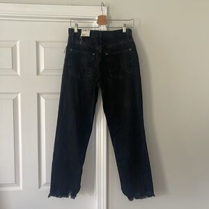 Brand new We The Free High Rise Tapered Baggy Boyfriend Fit Jean Size 27. Button fly. Frayed hem. Approximate inseam: 28”
