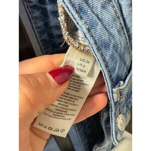 In excellent pre owned condition. Distressed style. Wide leg, baggy fit. Size 26. Measurements below.