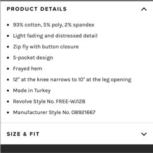 • Frayed hem