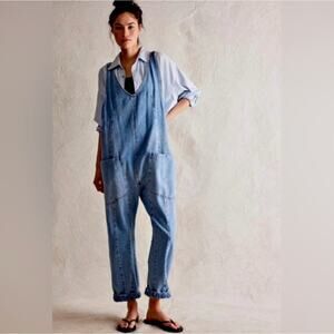 Free People We The Free High Roller Denim Jumpsuit Overalls L