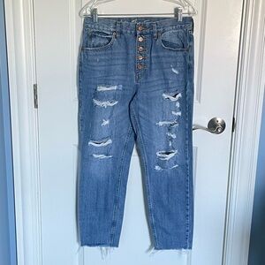 We The Free Blue High Waist Ripped Cropped Blossom Rigid Skinny Jeans Size 28 - inseam 25
