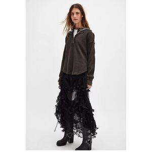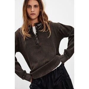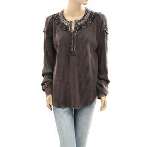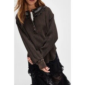 Free People We The Free Holly Henley Tunic Thermal Top Embroidered XS NEW 276132