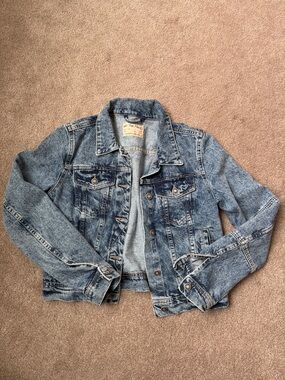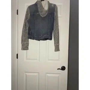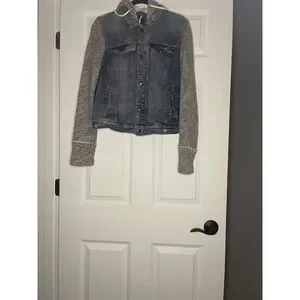 Free People Jean Jacket W Sweatshirt Material Arms Hood Large Blue Gray . Condition is Pre-owned. Shipped with USPS Priority Mail.