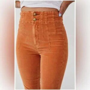 Free People We The Free Jayde Corduroy High Rise Flare Jeans in Burnt Orange 28