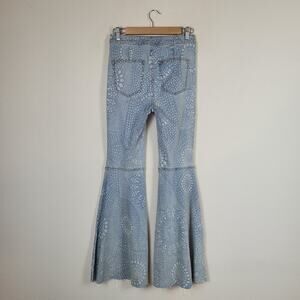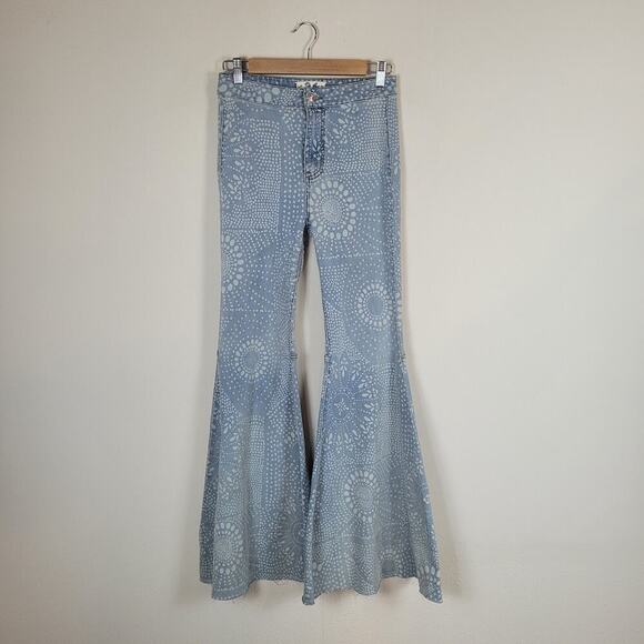 Free People We The Free Jeans 26 JUST FLOAT ON FLARE Bell Bottom Print 70s Boho
