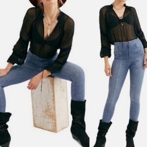 Elevate your denim game with these Free People Riptide jeans in a beautiful light blue shade. These slim fit jeans feature a mid-rise waistline, pull-on closure, and a skinny leg cut. Made from comfortable and stretchy fabric, these jeans are perfect for summer, fall, and spring. With a size of 30, these jeans are tailored to fit regular body types. The Free People Riptide jeans also come with features such as comfort and stretch, making them an ideal choice for any casual occasion. Add these jeans to your wardrobe and enjoy their versatile appeal.