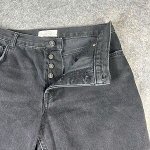 Elevate your everyday denim collection with these We The Free Jeans from Free People. Crafted with a timeless dark wash and a flattering high-rise waist, these straight-leg jeans offer a comfortable regular fit for any casual occasion. The size 29 jeans feature a raw hem for a touch of edge and a button fly closure that adds classic denim vibes. The black denim is versatile enough to pair with your favorite winter, spring, or fall outfits, while the solid pattern keeps them a staple in your wardrobe year-round. Care is a breeze with machine washable convenience, ensuring these jeans remain a hassle-free fashion choice for seasons to come.