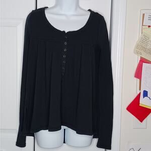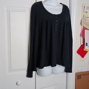 We The Free Free People Black Long Sleeve Kai Henley Waffle Knit Top in Excellent condition with no visible flaws.