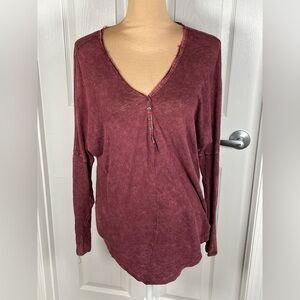 Elevate your wardrobe with this stylish long sleeve top in a rich burgundy hue. Perfect for any occasion, this top offers both comfort and elegance.
