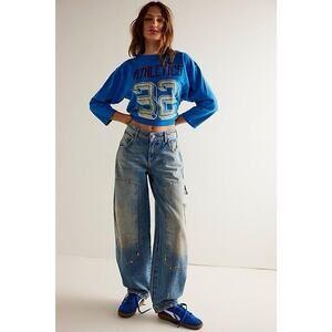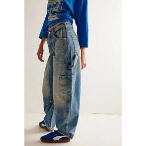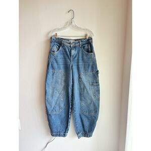 Free People We The Free Loren Barrel Jeans Denim Wide Leg Pants Dark Blue 27