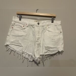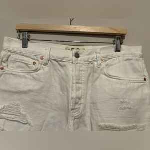 Free People We The Free Loving Good Vibrations Distressed Denim Shorts White