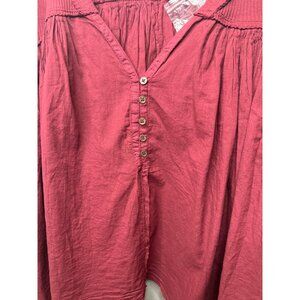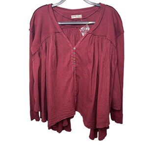 Free People We The Free Lyrical Flowy Tunic Top Ribbed Sleeves Burgundy Size S