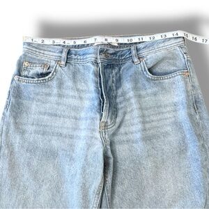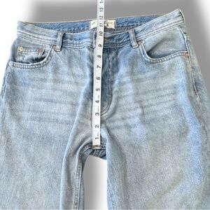 Free People We The Free Maggie Mid Rise Straight Leg Denim Blue Jeans Button Fly Raw Hem Women’s Size 26. Item in good pre-owned condition. OB1463178
