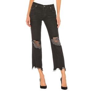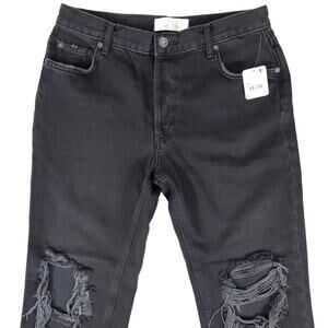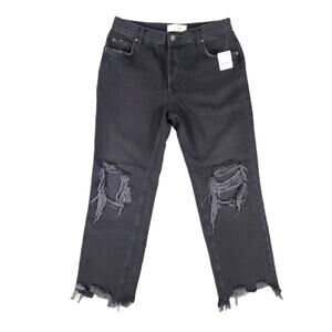 Free People We The Free Maggie Straight Jeans in the color Washed Black (a distressed ripped slightly washed looking black color).