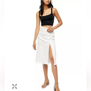 Free People We The Free Mambo Denim Midi Skirt Fringe hem 31 White wash New