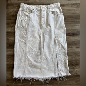Free People We The Free Mambo Denim Midi Skirt Fringe hem 31 White wash