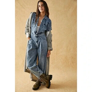 Free People We The Free Marla Trouser Denim Jumpsuit Jean One Piece Blue One Pie