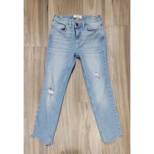 Free People We The Free Mid-rise Frayed Hem Distressed Light Wash Jeans Size 26