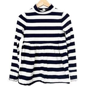 Free People We The Free Mod About It Navy Blue White Striped Mock Neck Long Sleeve Babydoll Top Sz XS