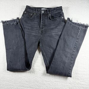 Free People We The Free Multi Button Up High Waist Straight Dark Charcoal Jeans
