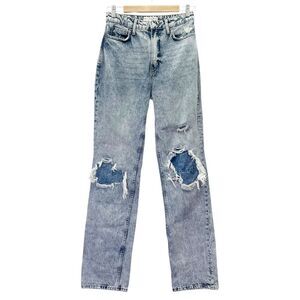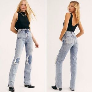 Free People We The Free My Own Lane Straight Jeans Acid Wash Distressed Size 28