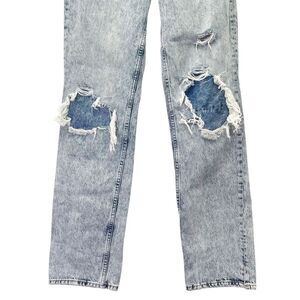 Free People We The Free My Own Lane Straight Jeans Acid Wash Distressed Patch Size 28 | 6