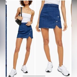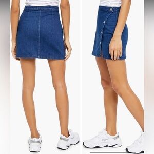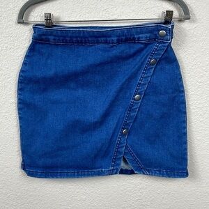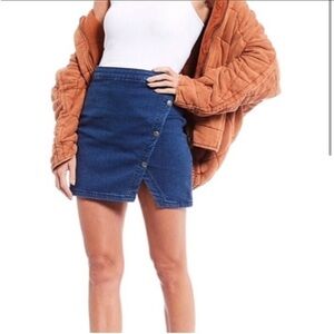 Free People We The Free Notched Denim Mini Skirt Asymmetric Snap Blue Jean Sz 6