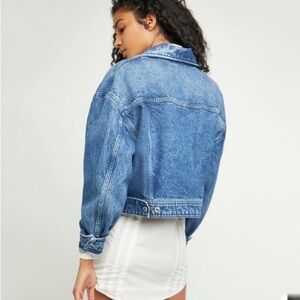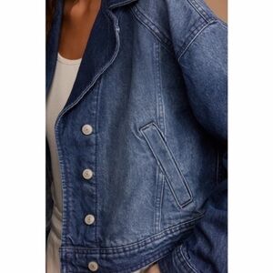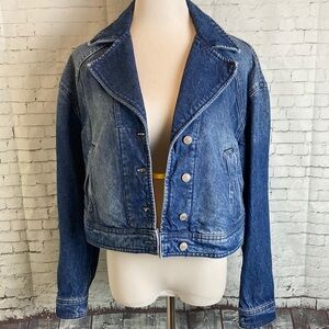 Free People We The Free Now or Never Cropped Denim Trucker Jacket Small