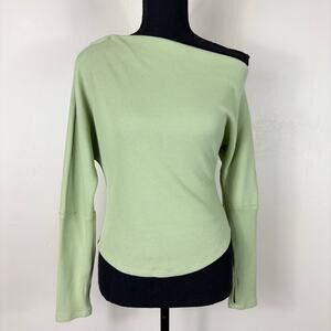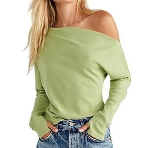 Free People We The Free Off Shoulder Long Sleeve Fuji Thermal Top in Misty Path