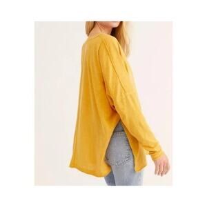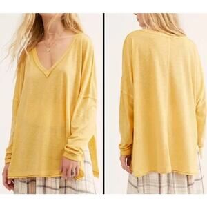 Free People We The Free On My Mind V-Neck Top Yellow Size XS Slouchy Oversized
