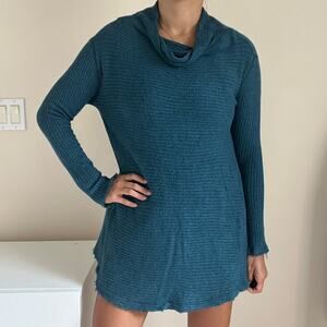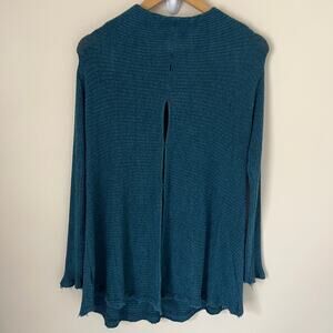 Free People We The Free Open Back Teal Blue Mock Neck Long Sleeve Sweater Size S