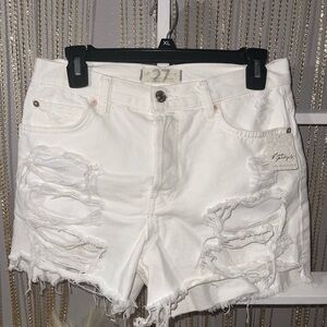 Free People | We The Free | Optic White Distressed Denim Shorts, Size 27 Waist